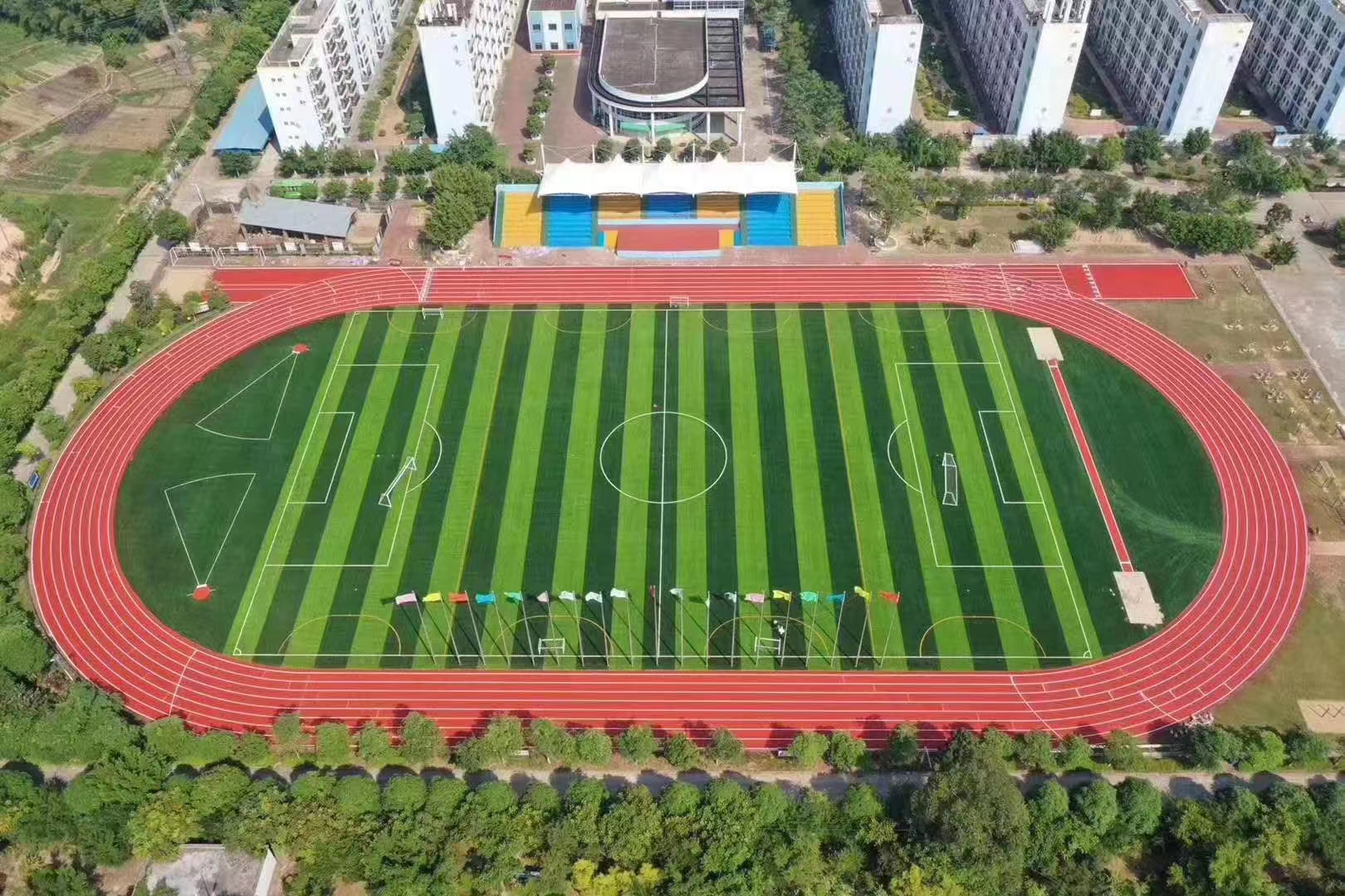 塑膠跑道又稱全天候田徑運(yùn)動(dòng)跑道,由聚氨酯預(yù)聚體、混合聚醚、廢輪胎橡膠、EPDM橡膠?;騊U顆粒、顏...